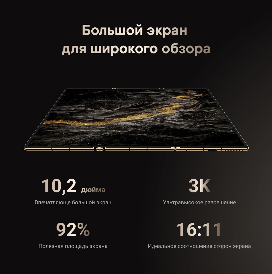 Разложите экран 10.2 дюйма HUAWEI X-True и наслаждайтесь четким и качественным изображением высокого разрешения 3K. Инновационный тройной экран и композитная ультрапрочная конструкция обеспечивают плавность складывания экрана и высокую надежность механизмов.